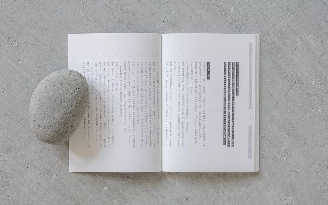 日本設計中心開發出能提高寫作興趣的文本編輯軟件“stone”。我們編制了其宣傳手冊《stone paper》。創刊號的主題是“Su(素)”。其中收錄了介紹有奇特存在感的語句的“素的語句”及俳句作家、編輯、劇作家、廣告文案作家撰寫的文章的“素之人”等
